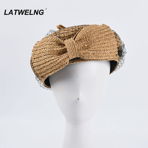2020 Vintage Retro Mesh Beret Ladies Fashion Bow Raffia Beret Party Dress Up Hat French Painter hat 5 Colors Wholesale S1150